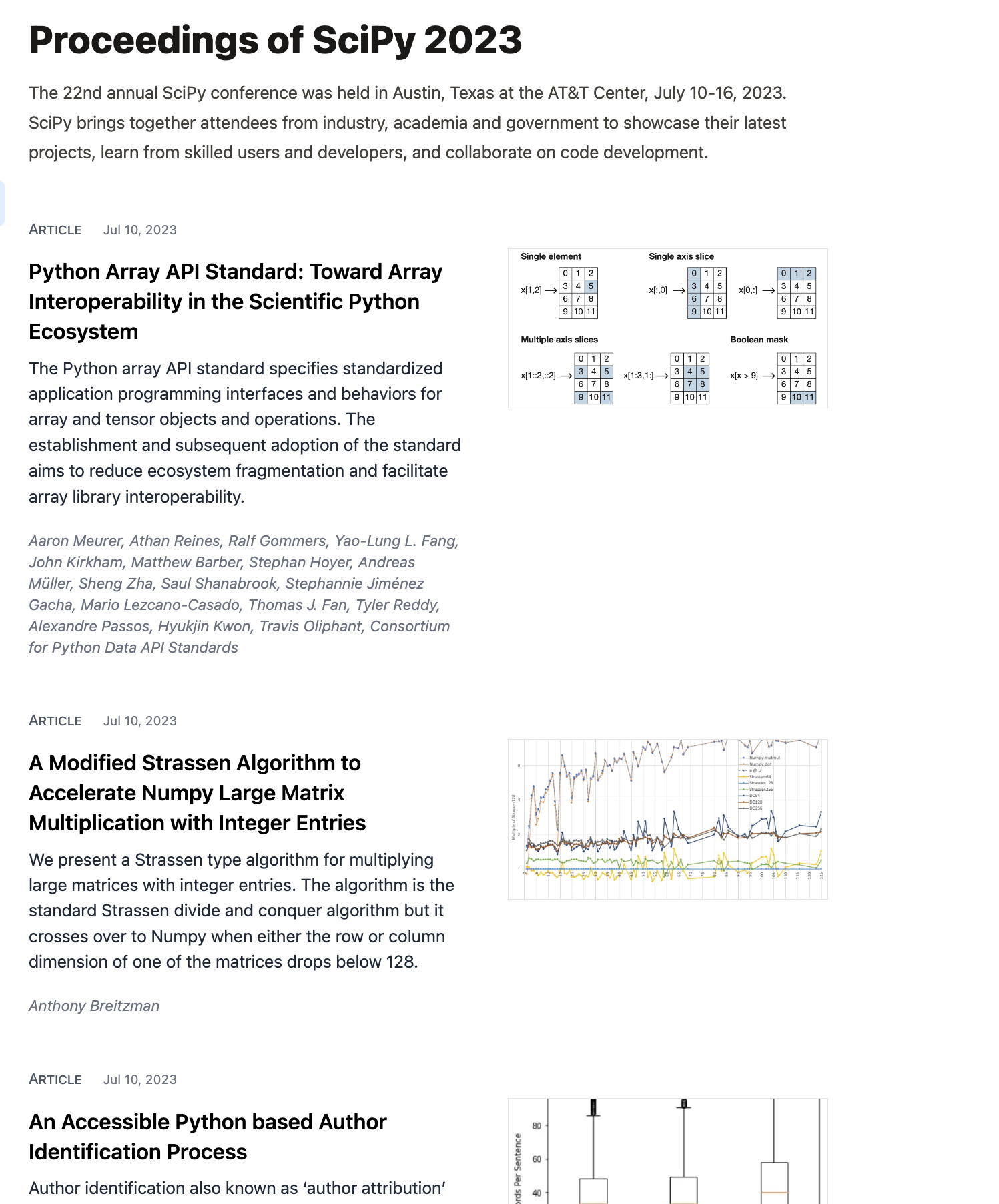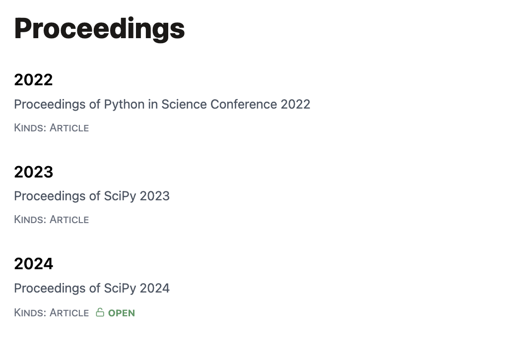 For example, a listing for the SciPy 2023 abtracts collection: