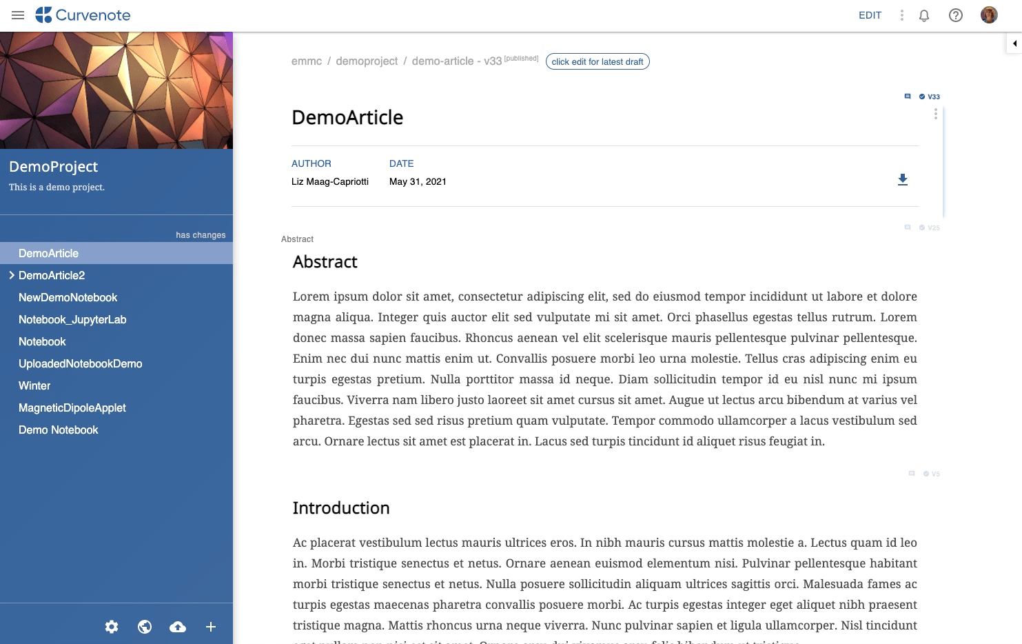 - Your changes are saved in a draft and will be visible the next time you click EDIT on Curvenote.
