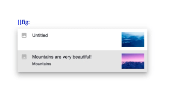 Figures can be referenced by their numbers within the text using either the command menu or keyboard shortcuts. To reference a figure use one of the following two commands, then select the figure you want to reference from the drop down menu. When you click on the reference a preview of the image and its caption is displayed. Learn about internal references Internal References