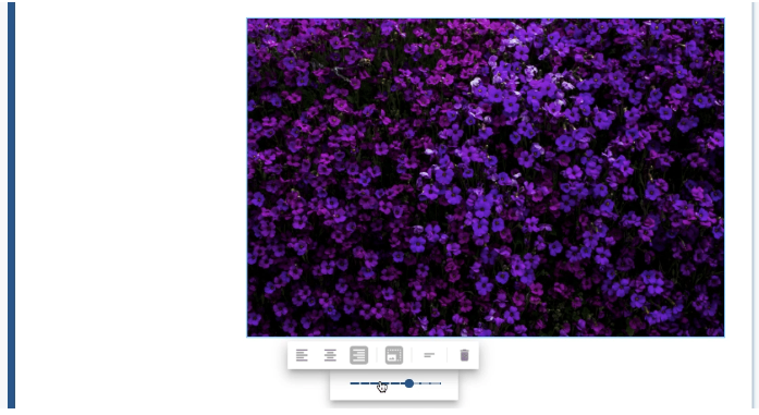 Once your image, GIF, video or IFrame has uploaded, you’ll see a toolbar which will allow you to format your content. You’ll be able to adjust the alignment, change the width, or delete it.
