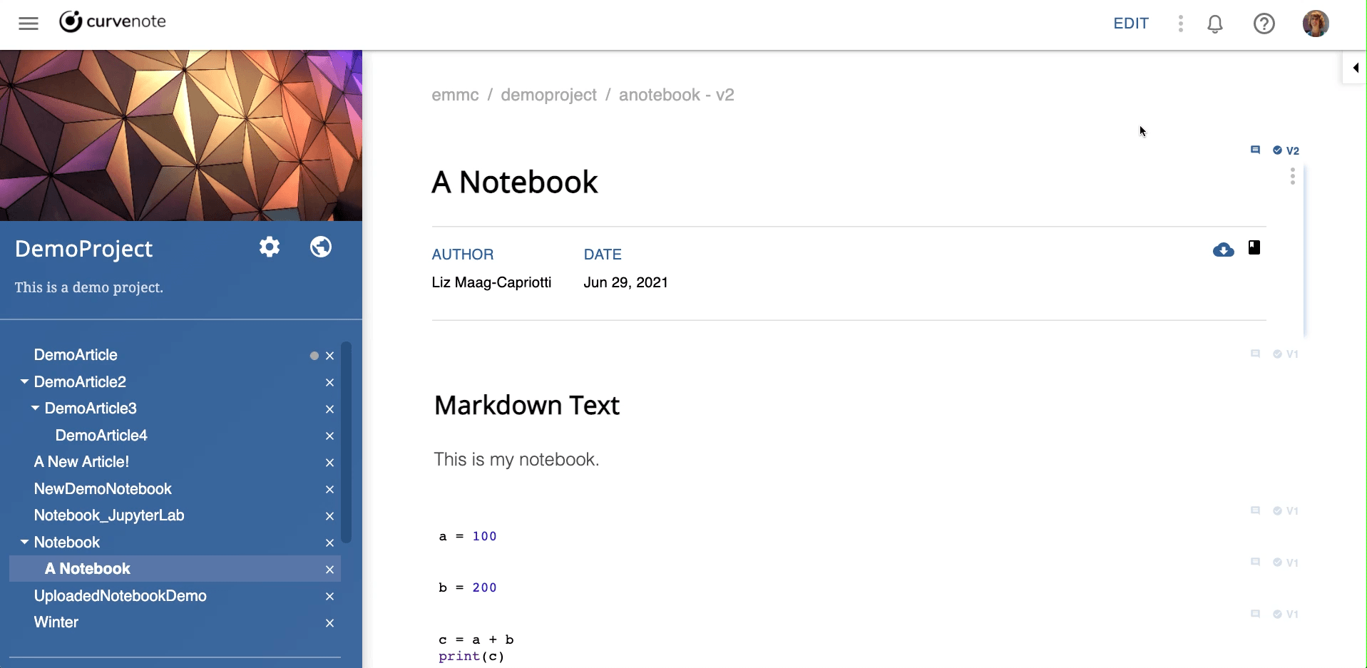 You can update the notebook URL, title, description, Binder URL, and/or thumbnail from Curvenote. To update the notebook settings: