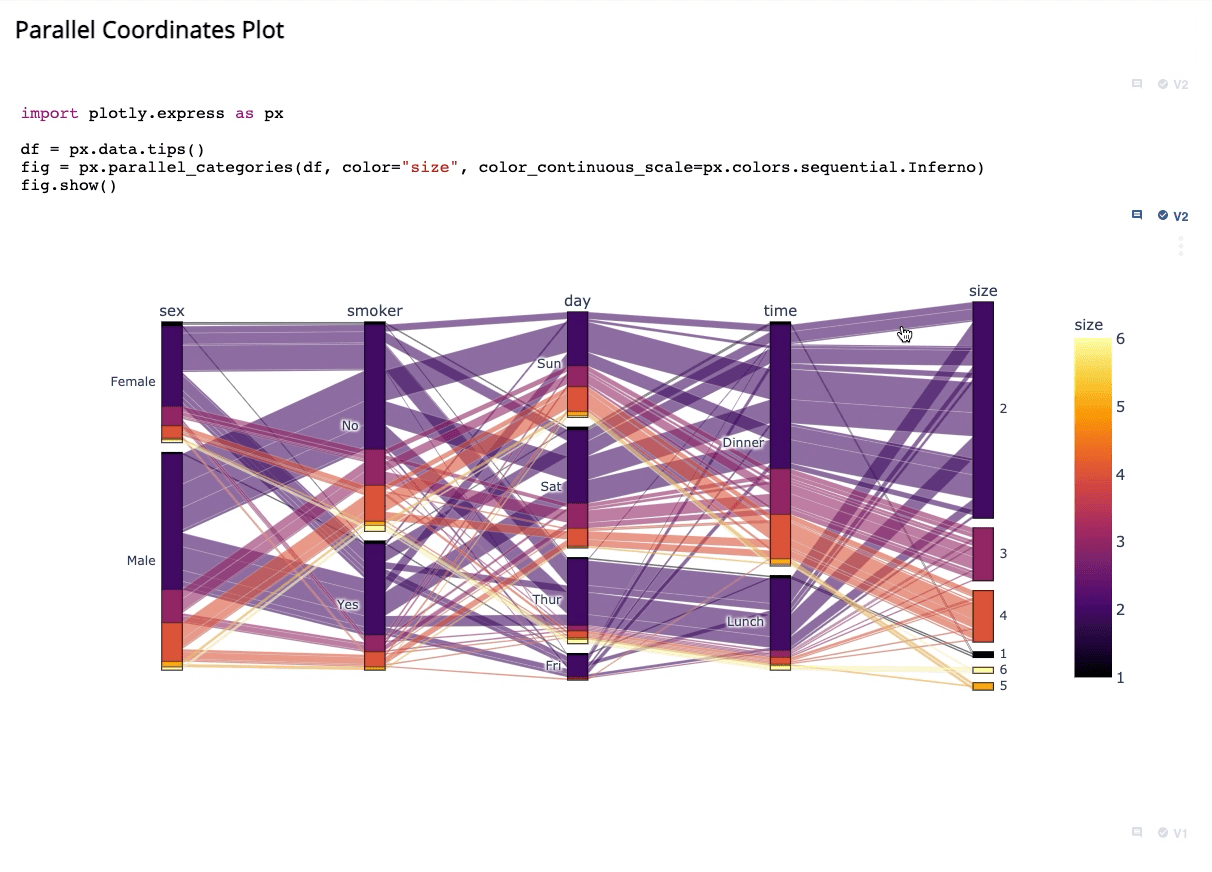 Most interactive output cells from Jupyter will remain interactive when viewed on Curvenote. Plots and displays created using libraries and packages such as Altair, Bokeh, Bokeh-Holoviews, Bokeh-Panel, Leaflet, Matplotlib, Pandas, Plotly, Seaborn maintain a local state and therefore you can continue to interact with them outside of Jupyter. Curvenote cannot currently run code cells, thus features such as ipywidgets are not interactive on Curvenote.