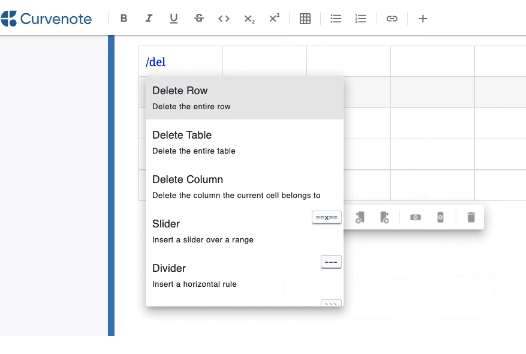 Tables can be added throughout your Curvenote content. After creating the standard table, you can format it by adding or removing rows, columns and headers. A variety of specialized content can be added within the cells of your table such as equations, lists, code blocks, images, links and more! Tables are easily converted to the necessary format when you export your content from Curvenote.